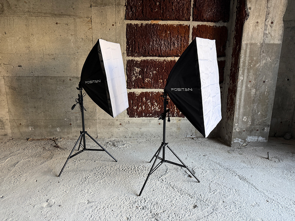 50x70cmソフトボックス。リモコン付き95WのLED電球は、白光・暖光・冷光といったいろ色温度や輝量を調整できます。