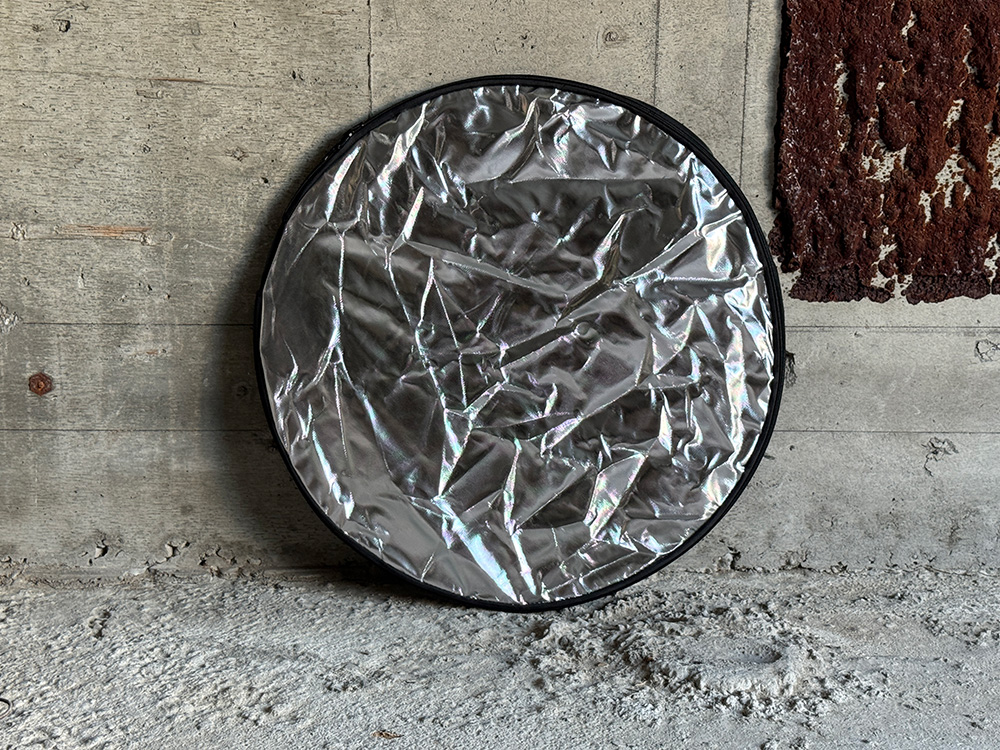 直径60cmレフ板。側面のファスナーを開ければ、白黒銀金半透明に変更でき、必要に応じた照明効果を作れます。