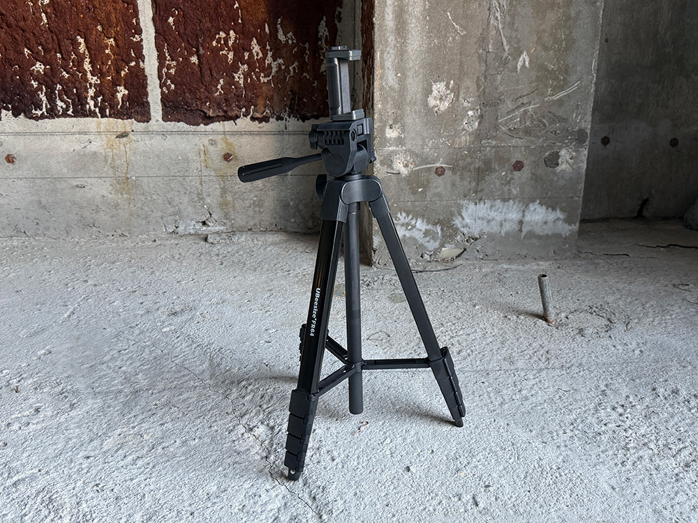 スリコのスマホ撮影可能なホルダー付き4段三脚です。スマホとBluetoothで接続できるリモコンシャッター付き。最大1,630mmまで伸ばせます。