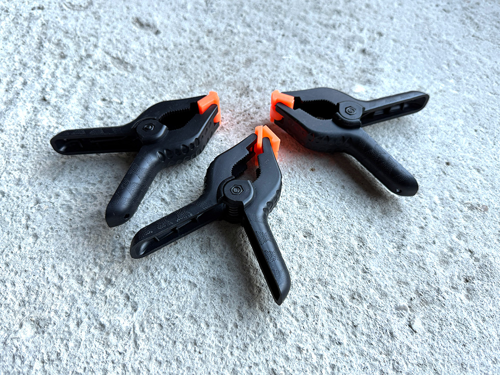 背景スタンドに背景布やシートを固定するためのクリップが6個あります。