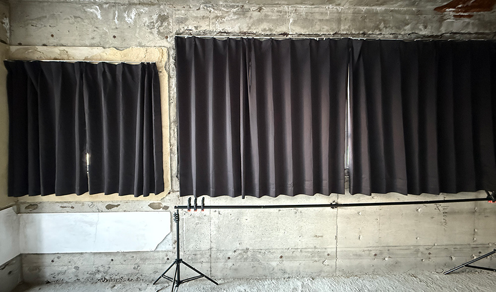 更衣室を除く、スタジオの窓にはすべて暗幕が設置されています。日中でも暗闇を作れますので明るさの調整などにお役立てください。