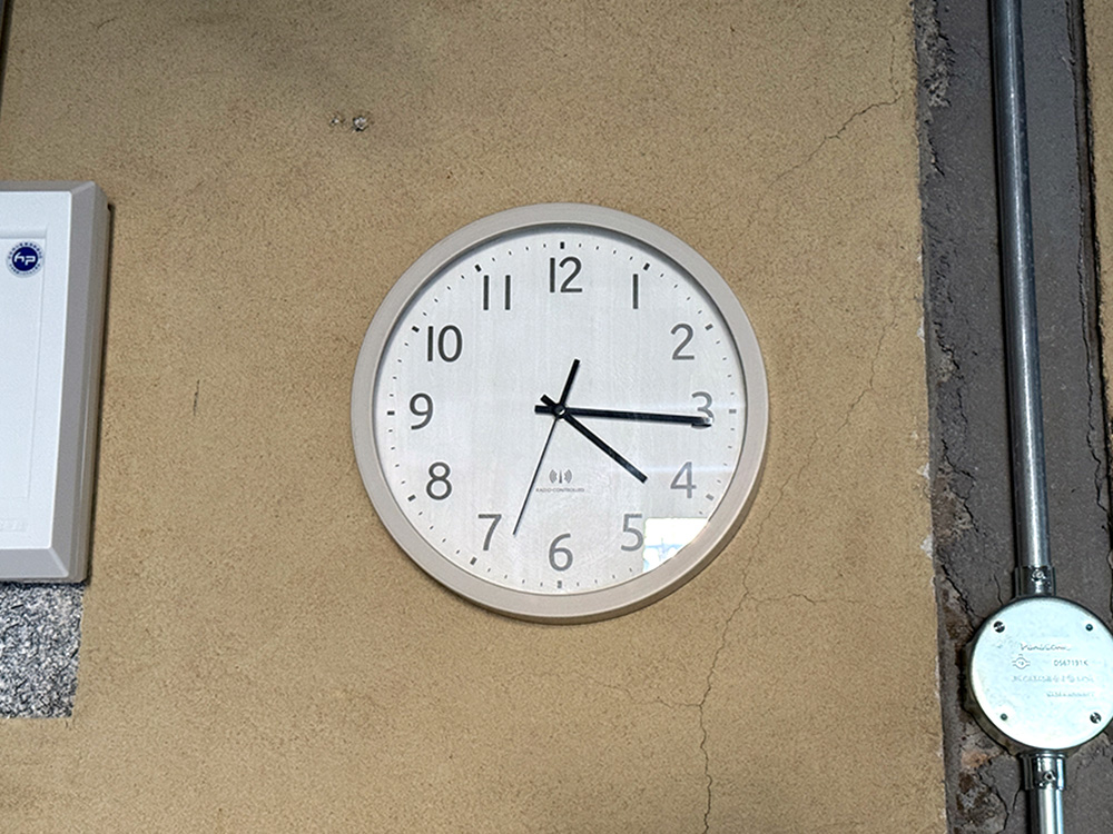 時間は正確に表示するため、スタジオの時計はほぼ狂いのない電波時計です。